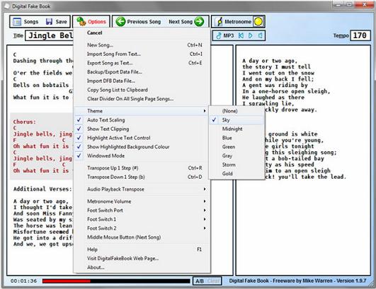 I wrote Digital Fake Book to replace the printed chord/lyric sheets I used to use during practice, and decided to make it available for anyone else who may find it useful. Digital Fake Book is simply a text viewer with some added features to make it more useful for musicians who prefer to work from chord/lyric sheets rather then sheet music.